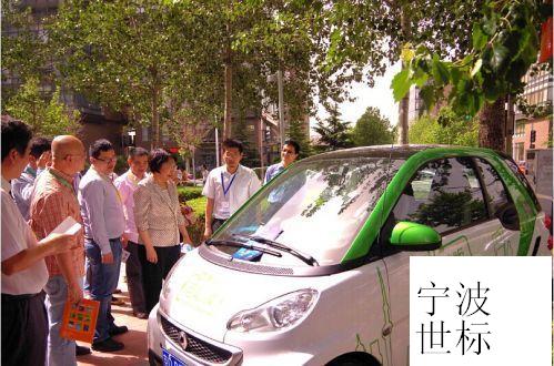 客户参观并试驾电动汽车,感受绿色交通。(图)